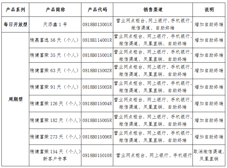 尊敬的客户: 为方便您投资我行理财产品,我行计划自2019年12月3日起调整部分产品的销售渠道,具体如下: