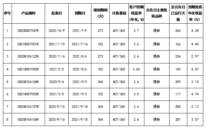 截至2021年6月30日,上述产品运行情况良好,投资组合年化收益率达到本期产品说明书约定的客户预期收益率。感谢您一直以来对北京农商银行的信赖与支持!我们将竭诚为您提供更为安全、稳健、优质的理财服务,敬请继续关注我行理财产品。