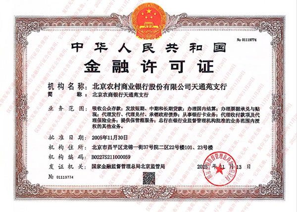 机构名称:北京农村商业银行股份有限公司天通苑支行