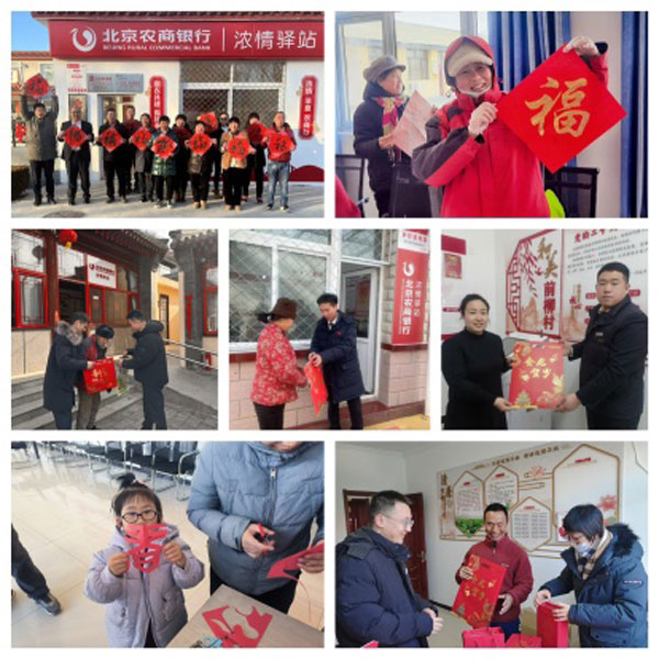 新春已至,年味渐浓。为营造喜庆、安乐、祥和的新春氛围,更好地发挥“浓情驿站”的阵地作用,北京农商银行近期在已落地的“浓情驿站”举办写春联、送“福”字等系列送温暖活动,在群众浓浓的年味儿中感受乡村振兴带来的新活力。