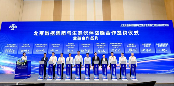 2025年9月11日,在中国国际服务贸易交易会期间,北京农商银行应邀出席北京数据集团揭牌仪式暨北京数据产业生态发展论坛,并与北京数据集团签署战略合作协议。北京数据集团有限公司董事长郭永昊、北京农商银行党委副书记、行长白晓东,党委委员、行长助理魏广慧等领导出席活动,与多家金融生态合作伙伴共同见证首都要素市场核心平台的启航,共谋数据产业发展蓝图。