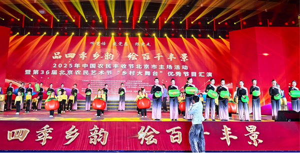 丰收节主场活动设立8大主题展区:特色产品集中展示区呈现新品种、分享创业增收经验,农业科普活动展区融合科创科普与科技兴农,通州展区介绍乡村振兴多方面成果,智慧农业和智能装备展展示农业科技成果,电商与金融助农展区分别呈现数字化助农模式及助农服务案例,第一书记风采展区定格助农瞬间,市供销社展区展示为农服务实践,丰收市集展区汇聚多地农产品并提供非遗农事体验与美食品鉴。各展区全方位呈现首都“百千工程”下的乡村振兴新貌,打造沉浸式体验,尽显节日、丰收盛况与乡村魅力。同时,以“品四季乡韵 绘百千丰景”为主题的第36届北京农民艺术节“乡村大舞台”优秀节目汇演在会展中心精彩呈现,节目内容紧扣乡村振兴、农事劳作、丰收欢庆等主题,传递出浓厚的乡土情怀与文化气息。