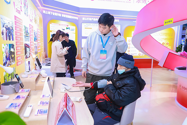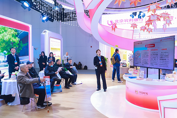 展厅的最大亮点在于养老服务生态体系的展示。北京农商银行在服务中倾听百姓心声,洞察到广大老年朋友在生活服务、精神陪伴、健康管理等方面的多元需求,延伸传统金融服务半径,积极构建“金融+养老”生态圈,持续推进“养老金融+法律”“养老金融+文旅”“养老金融+健康”和“养老金融+消费”等生态服务场景的建设。在展位现场,参观者可以亲身体验养生茶、无线护眼仪、头部养护仪等产品,近距离感受充满温情的“金融+养老”生态。