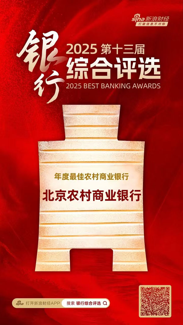 1月28日,由新浪财经主办的“2025(第十三届)银行综合评选”活动获奖名单正式揭晓。北京农商银行凭借2025年度在服务三农、赋能乡村振兴、支持区域实体经济等领域的突出表现,成功斩获“年度最佳农村商业银行”奖项。
